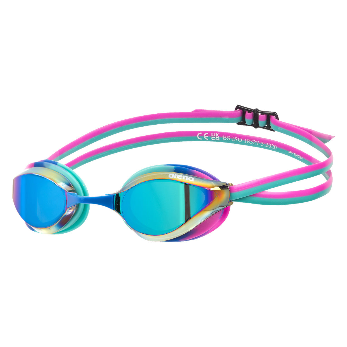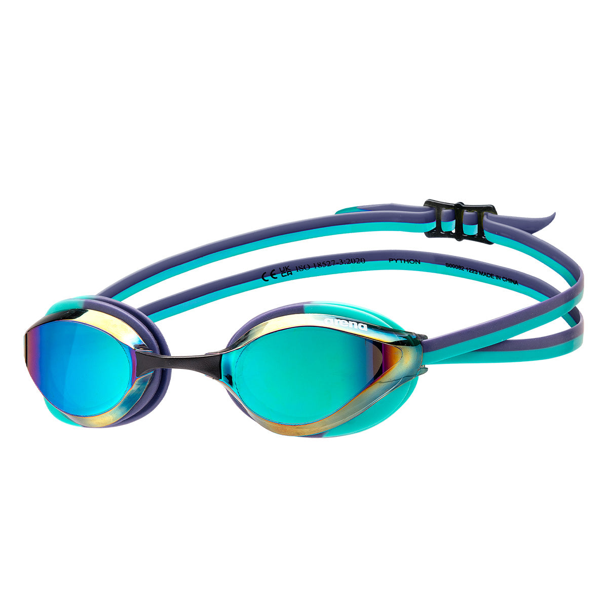 Los cómodos Goggles de natación espejadas arena Python unisex de alta calidad son perfectos para nadadores de competencia y ofrecen una hidrodinámica avanzada. Artículo aprobado por la FINA. Las lentes curvadas garantizan una excelente visión panorámica. Se suministra con tres puentes de nariz intercambiables para una perfecta adaptación a las diferentes formas de la cara y la nariz. La doble correa se ajusta fácilmente en la parte posterior y garantiza un ajuste estable, incluso durante el arranque y el giro. Los Goggles de natación están equipadas con una película antivaho, protección UV y no contienen PVC. Este modelo está disponible con lentes de oscurecimiento medio para todos los usos y lentes oscuras para entornos luminosos o para quienes quieren la máxima protección contra la luz.